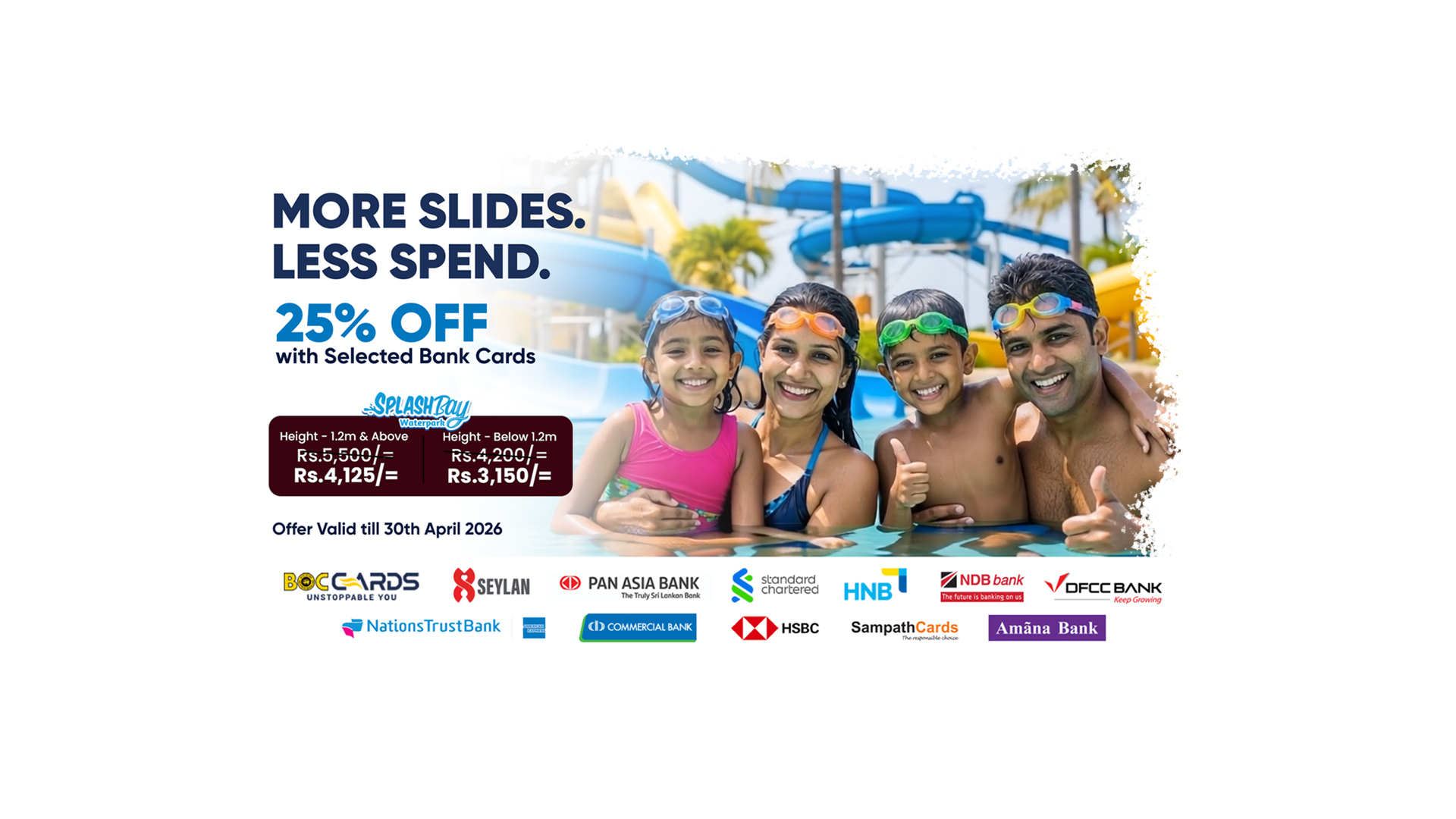 Are you ready to Spend a Whole Day in Another World? Pearl Bay, a David Pieris Group initiative, is Sri Lanka's First International Standard Leisure Park right here in Bandaragama. Pearl Bay comprises four zones which include SplashBay (European Standard Waterpark), SpeedBay (FIA-CIK certified 1.2Km karting track), TargetBay (5-lane Air Rifle Shooting Range) and YumBay (Cafe and Restaurant).
